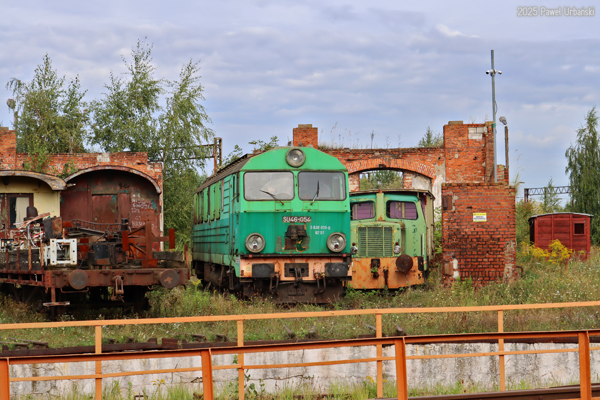 Przeznaczona do zachowania SU46-054, jako ostatnia przedstawicielka tej serii lokomotyw spalinowych stoi przed obrotnicą w Parowozowni Jarocin.